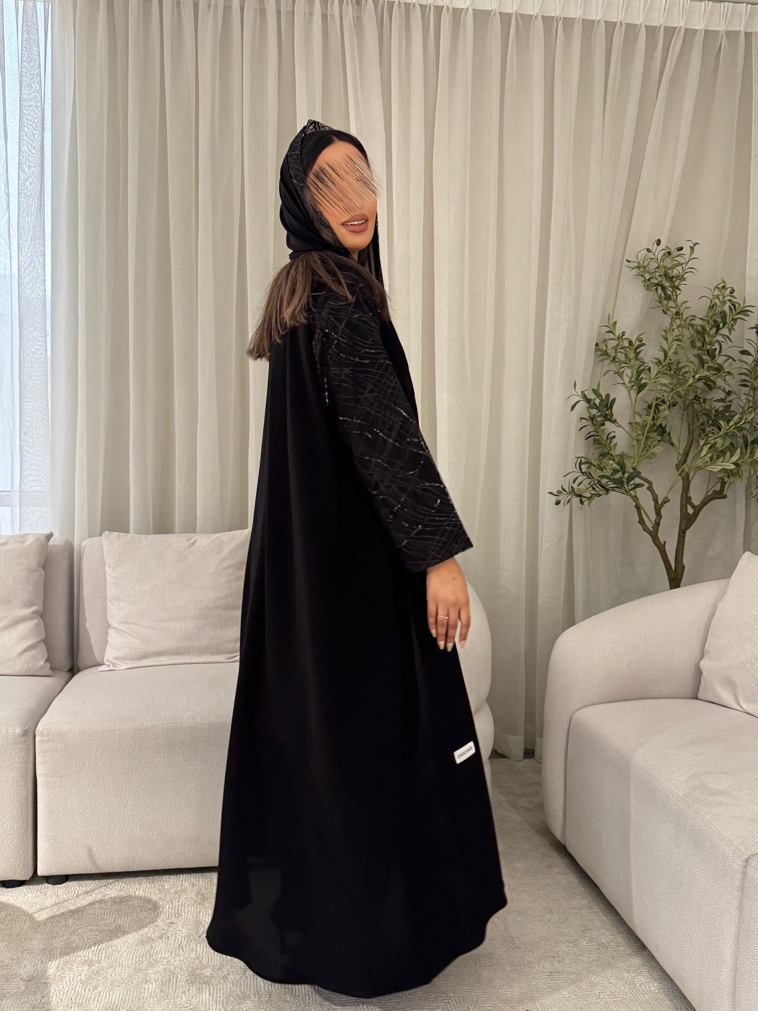 ✔ قماش كريب ملكي أسود ناعم، لا يحتاج للكوي، بسواد عالي وفاحم يمنحك إطلالة فخمة.