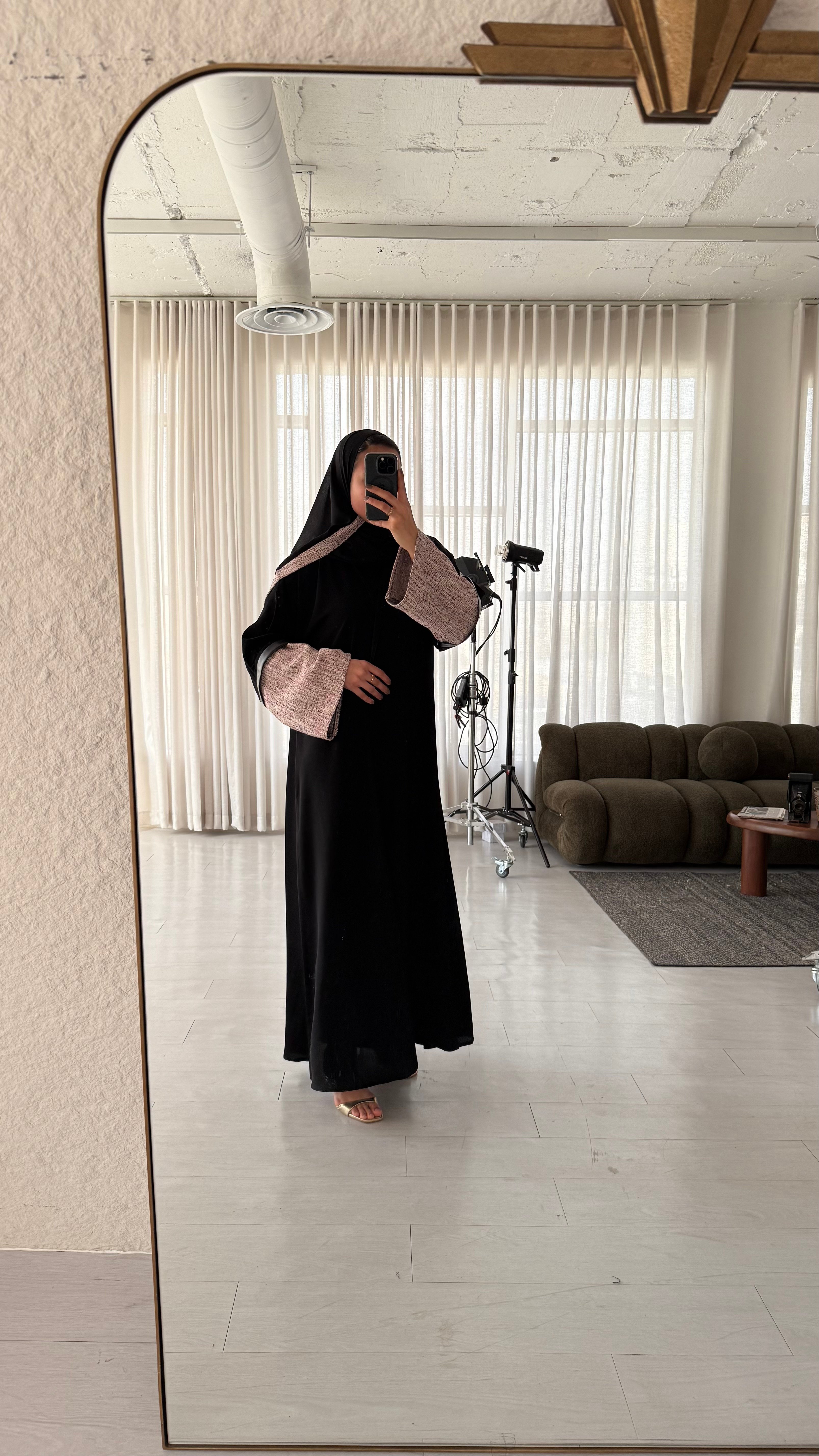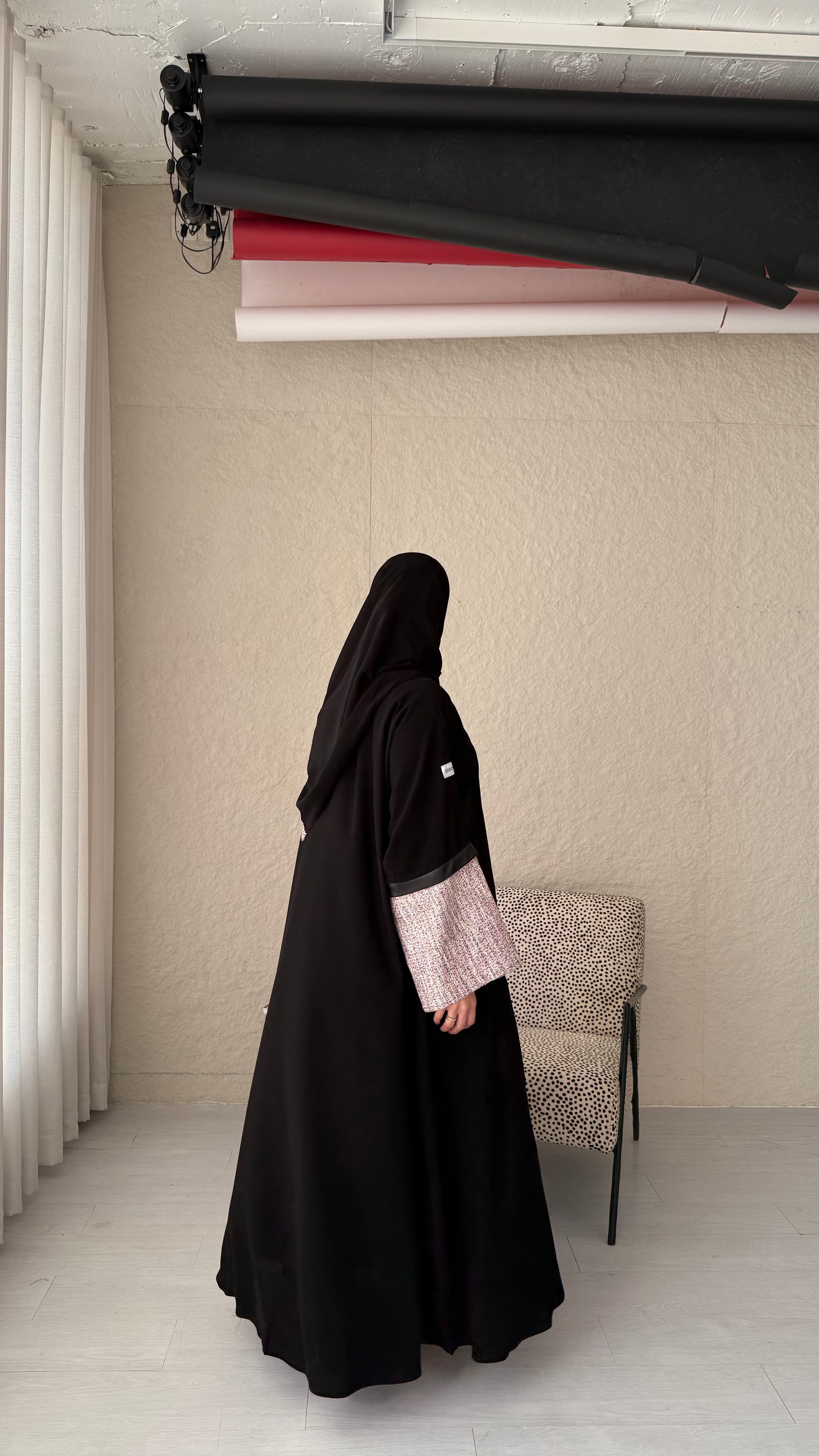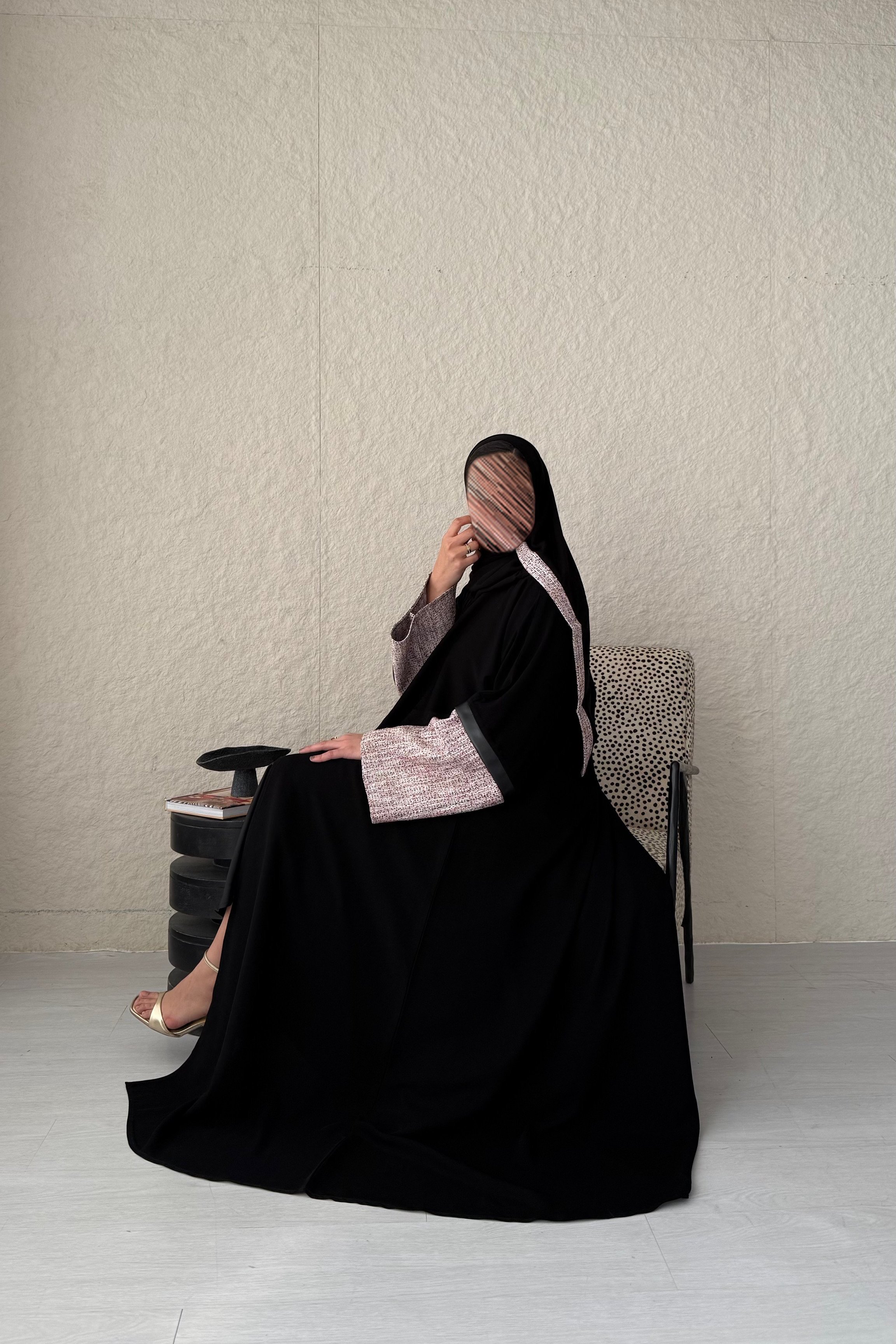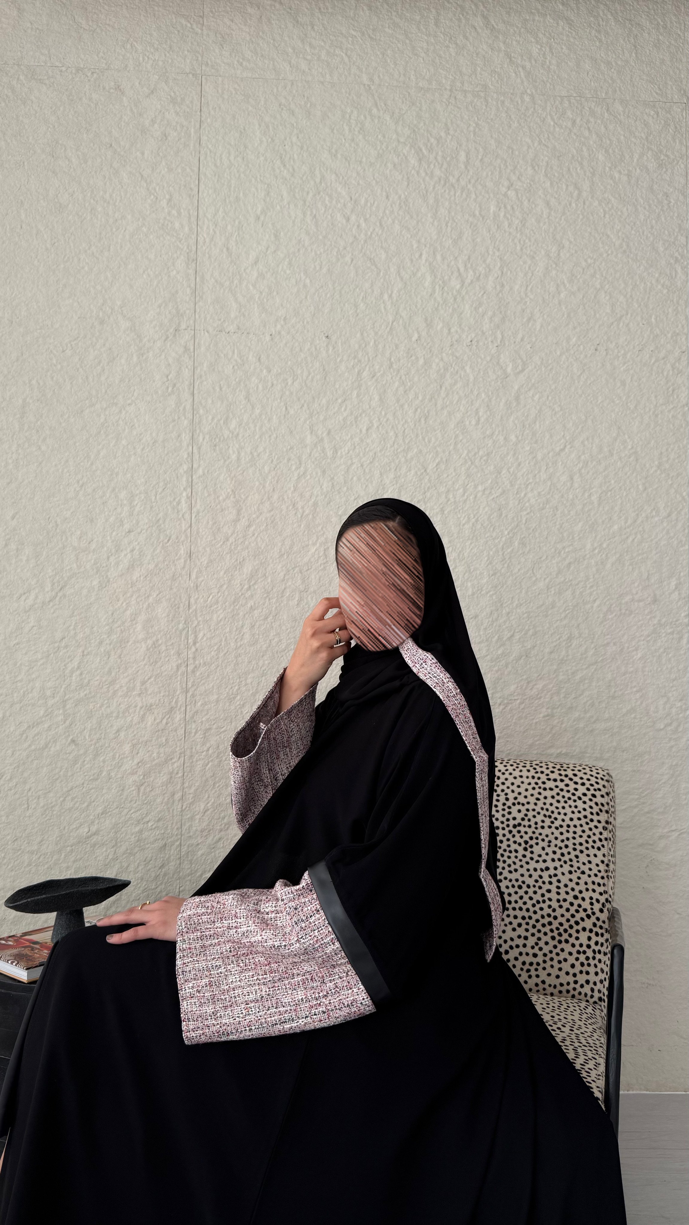 • الطرحة: اضافة شانيل على الأطراف لإكمال جمال العباية .